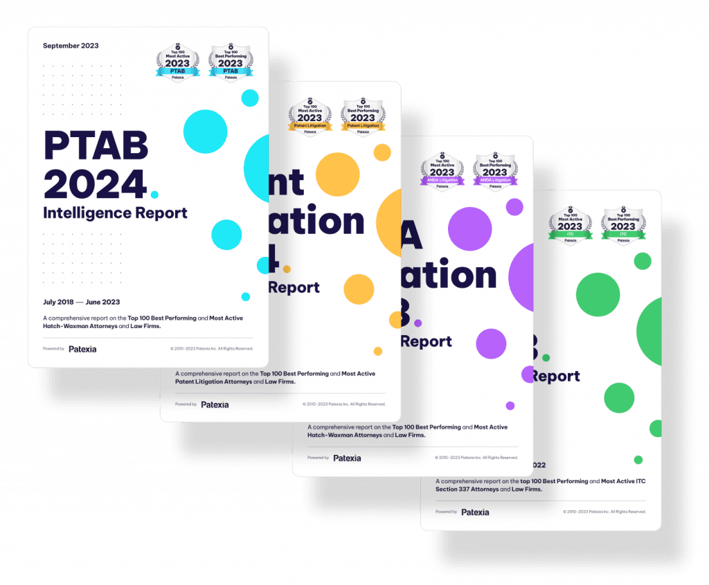 Part of the Insights platform, Patexia Annual IP Reports turn IP litigation and prosecution data into strategic insight, so you can benchmark performance, evaluate competitors, and uncover new opportunities across: